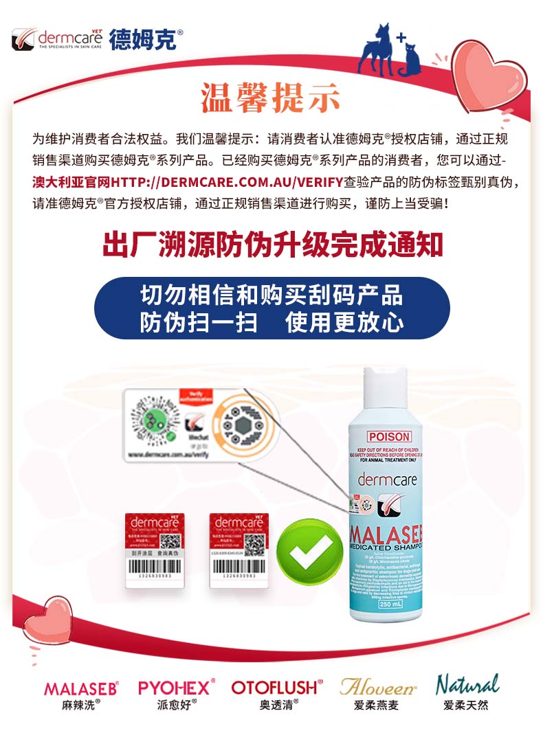 再次提醒兽医和消费者认准同时符合 官方溯源(二维码)和正品验真防伪
